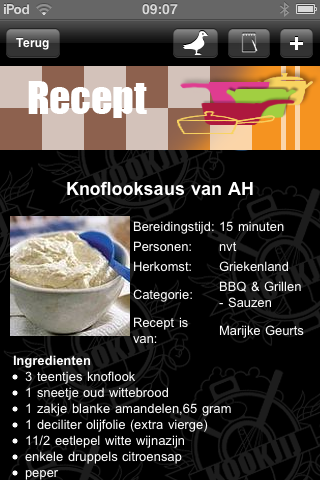 KookJij bevat 12.000 recepten afkomstig van de website kookjij.nl. Deze zijn op categorie beschikbaar, maar helaas niet op alfabet waardoor je bijvoorbeeld voor een knoflooksausje, even flink zal moeten bladeren tussen de barbecue sauzen.