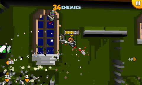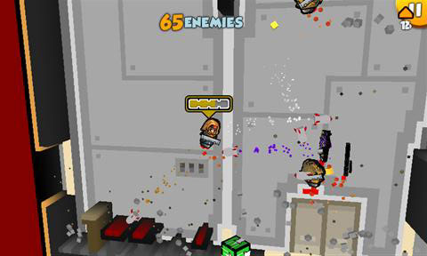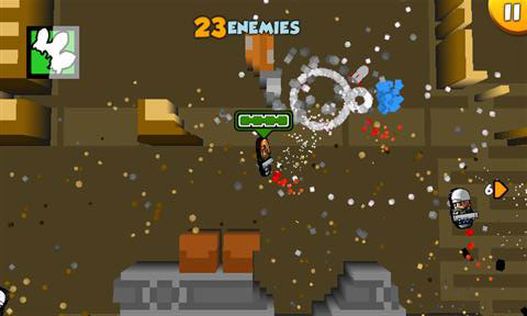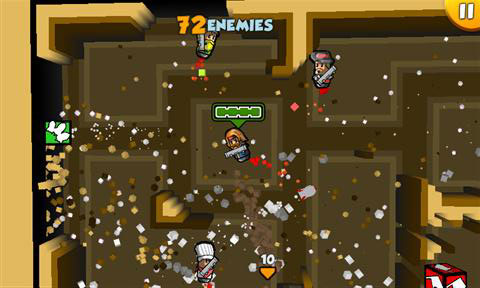 De besturing is zoals we die van veel touchscreen games op de iPhone kennen. Aan de linkerkant van het scherm beweeg je met de duim om het poppetje te besturen terwijl vegen met de rechter duim bepalen in welke richting je schiet. Dit laatste is soms lastig. Op ons test-toestel, de Samsung Omnia 7, schuiven we regelmatig over de Bing knop heen waardoor onze gaming sessie wordt onderbroken. Ook zitten onze duimen soms in de weg. Omdat de linkerduim bijna constant op het scherm ligt, hebben tegenspelers dia van links komen vaak een tactisch voordeel.