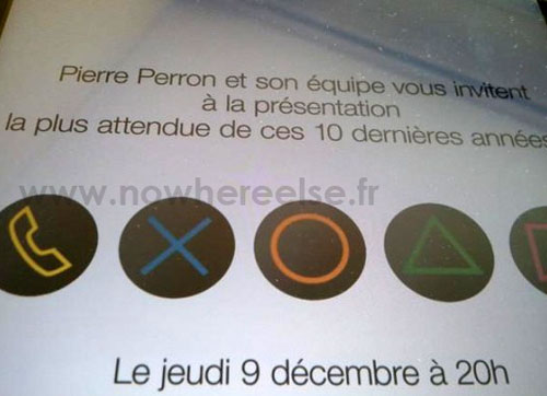 SonyEricsson in Frankrijk is begonnen met het rondsturen van uitnodigingen voor een pers evenement op 9 December. Het bijzondere aan de uitnodigingen is de aanwezigheid van de vier Playstation knoppen en een vijfde knop met een telefoon die erop gedrukt zijn.