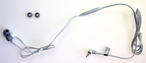 Bij de Xperia Play ontvang je ook een in-ear koptelefoon in dezelfde kleur als het toestel dat je hebt gekozen (er is ook een zwarte uitvoering). Bij de oordopjes zitten twee sets eargels zodat je deze zelf op maat kan maken.