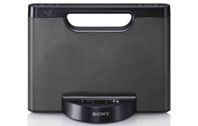 Sony heeft vandaag een nieuwe speakerdock voor de iPhone en iPod Touch geïntroduceerd. Het gaat om de RDP-M5iP die ongeveer drie tot vier keer zo breed is als de iPhone en ongeveer twee keer zo hoog. De speakerdock is niet alleen bedoeld voor thuis, maar ook voor onderweg. Vandaar het handvat in het midden.