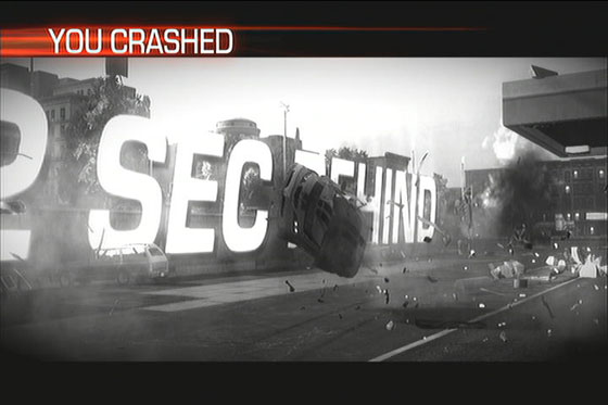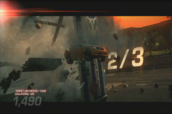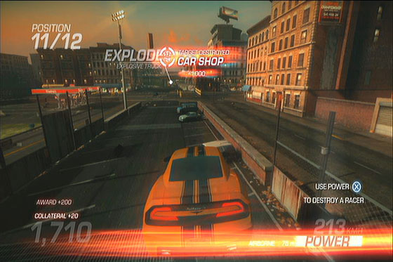Dat ik het over het herstarten van een race heb is overigens niet zonder reden. Ridge Racer: Unbounded is een pittige racer. Waar de banen in de reguliere Ridge Racer series uit enkel rechte stukken en bochten bestaan, zijn de banen in unbounded pure chaos. Je loopt met grote regelmaat het risico op frontale botsingen met allerlei objecten. Zeker wanneer je racet om de koppositie kan een frontale botsing voldoende reden zijn om de race te herstarten.