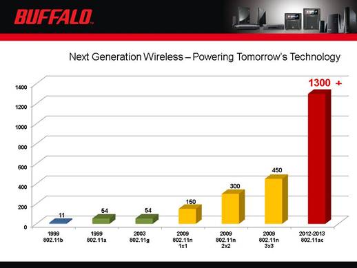 Het moest er toch eens van komen: De 802.11n standaard waar al onze hedendaagse Wi-Fi apparatuur mee is uitgerust heeft ondertussen al een opvolger in de wachtrij staan: De 802.11ac standaard. Buffalo is wereldwijd de eerste fabrikant die deze technologie in een router op de consumentenmarkt gaat brengen.