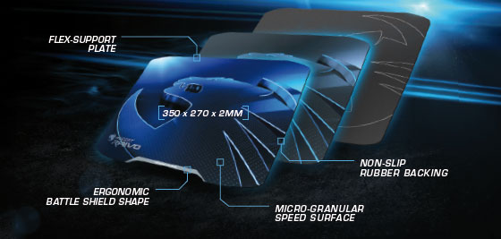 De nieuwe muismat meet 35x27x0,2 CM en is voorzien van een ultraglad oppervlak dat geoptimaliseerd is voor de optische sensoren van gamingmuizen. Een uitsparing zorgt ervoor dat de pols lekker ligt terwijl speciale anti-slip zolen er voor zorgen dat de plaat keurig op haar plaats blijft liggen. Ten slotte zorgt een speciale coating op de mat ervoor dat deze geen vuil op zal nemen.