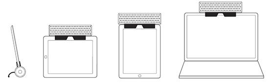 De speaker is namelijk niet alleen op je tablet of laptop te klikken, hij doet ook nog eens dienst als standaard. Doordat het kliksysteem universeel is, maakt het niet uit welke tablet of laptop je hebt.