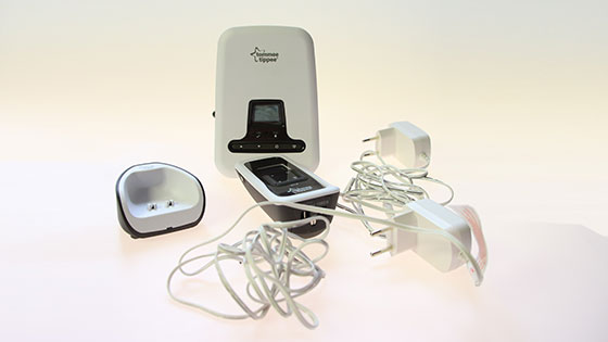 In de doos van de Tommee Tippee vinden we natuurlijk de bewegingsmat, maar ook een draadloze DECT ontvanger, een laadstation, de zender en natuurlijk twee netstroomadapters.