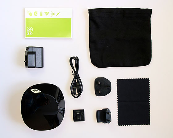 Naast dat Xqisit de xqPRo van een mooie, stevige verpakking heeft voorzien, zit hij ook bomvol accessoires. Zo vinden we een netstroomadapter met pluggen voor de EU, UK en de VS. Daarmee is de xqPRO een speaker die prima mee op vakantie kan.