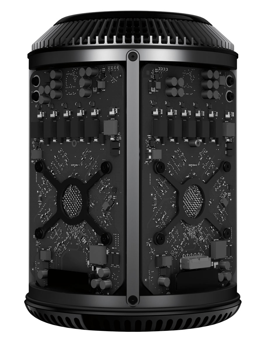 De nieuwe Mac Pro is gebouwd rondom een uniek afkoelingsconcept: de thermische kern. De aluminium behuizing van is 25,1 cm hoog en dus van Madurodam formaat vergeleken met de vorige generatie. Nog nooit eerder was zoveel rekenkracht in zo’n kleine behuizing voor de consument beschikbaar. Mac Pro heeft Intel Xeon-processors met 4, 6, 8 of 12 cores die een Turbo Boost-snelheid tot 3,9 GHz weten te halen. De twee AMD FirePro grafische processors presteren maar liefst acht maal beter dan de processors van de vorige Mac Pro-generatie. De op PCIe gebaseerde flashopslag bereikt sequentiële leessnelheden die tot wel 10 keer sneller zijn dan traditionele harde schijven in desktopcomputers. Dankzij het ECC DDR3-geheugen beschikt de nieuwe Mac Pro bovendien over tot wel 60 GBps geheugenbandbreedte. Met al die kracht kun je ongestoord 4K-video bewerken terwijl je gelijkertijd op de achtergrond effecten rendert. Verder heeft Mac Pro maar liefst zes Thunderbolt 2-poorten, die stuk voor stuk 20 Gbps bandbreedte per apparaat leveren. Er kunnen in totaal 36 snelle randapparaten, waaronder de modernste 4K-beeldschermen, worden aangesloten. Op papier is dit het ultieme Ultra HD werkstation.