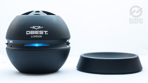 In de verpakking is de mini speaker magnetisch verbonden aan de houder waar deze opgezet kan worden. Deze houder is te bevestigen op allerlei typen oppervlakten waardoor zowel horizontale als verticale bevestiging mogelijk is. Bij een verticale bevestiging lijkt deze speaker, mede door zijn zwart rode design op een beveiligingscamera. Neemt niet weg dat bij montage op het dashboard de magnetische bevestiging sterk genoeg om tijdens het rijden goed te blijven zitten. In tegenstelling tot het kleine broertje, Dbest Eiffel 1, is deze alleen in de kleuren combinatie zwart/rood of zilver/rood verkrijgbaar. Het zwart rode design geeft hierbij weinig contrast. Het formaat van de Dbest past binnen de handpalm waardoor deze lekker in de hand ligt. Door zijn gewicht en afwerking aan de buitenzijde ligt deze ook erg zacht en solide in de hand. In het midden weergeeft een kleine led balk door middel van kleur indicatie de verschillende functies aan. Dit alles doet denken aan een james-bond achting snufje.