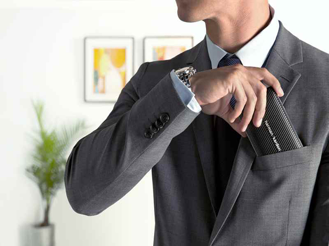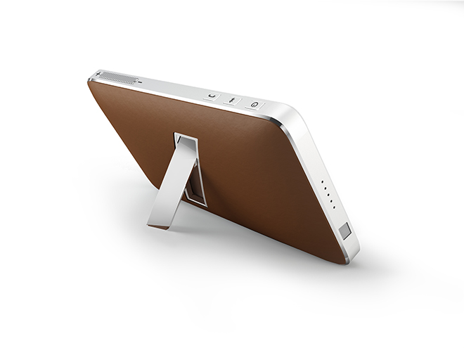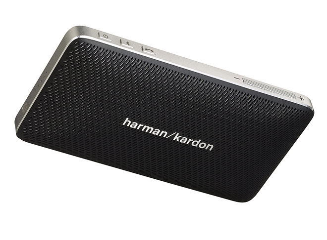 Na de Esquire van vorig jaar, komt Harman/Kardon opnieuw met een strakke speaker voor onderweg. Ditmaal de Esquire Mini die als volwaardige speakerphone gebruikt kan worden. Er zit zelfs een handige standaard op om hem goed neer te zetten. De body is gemaakt van aluminium en echt leer (niet dat plastic spel van Samsung).