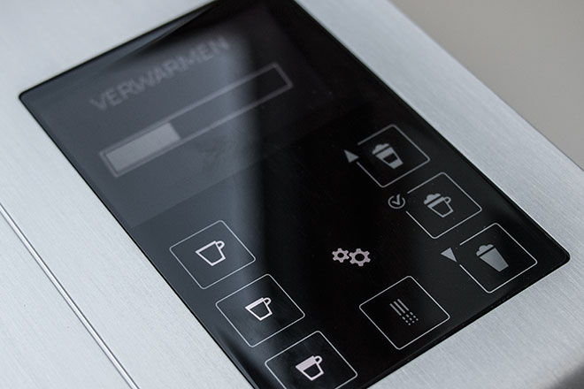 Het bedieningspaneel van de Nespresso Lattissima Pro is ook compleet nieuw voor Nespresso. Het bedrijf neemt afscheid van de standaard knoppen die we overal tegenkwamen. De bovenkant van het apparaat kent een serie touch knoppen met daarboven een status display. En ook dat display is een primeur in de Nespresso Lattissima Pro.