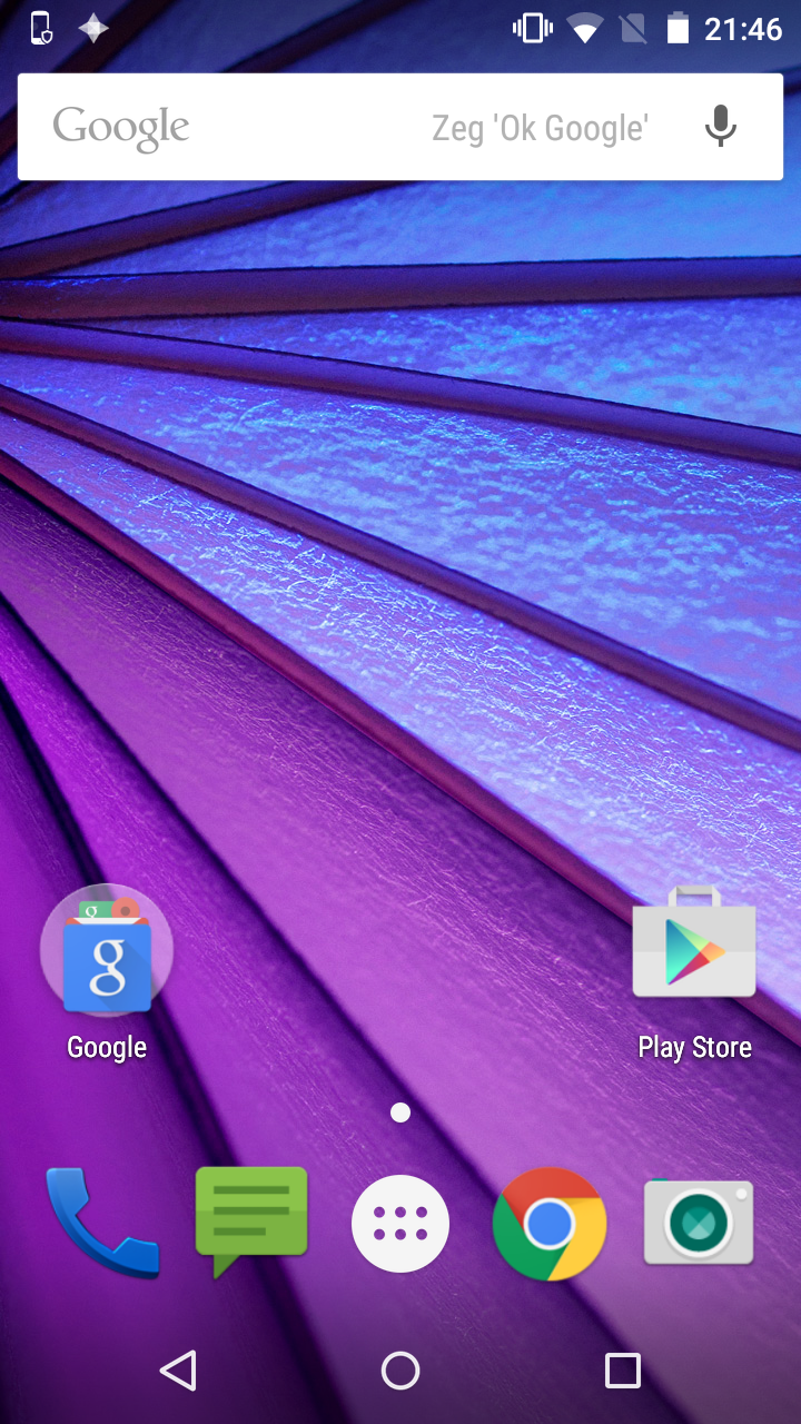 Dat Motorola deze snelheid voor elkaar krijgt heeft vooral te maken met de Android versie die zij installeren. Ookal werkte ik gisteren op een vroege versie, Motorola installeert geen eigen UI en levert nauwelijks eigen apps mee. Je zit dus heel dicht op de pure Android ervaring en dat scheelt een berg rekenwerk voor de processor. Bijkomend voordeel zou een langere accuduur moeten zijn. Hoe dan ook, het werkt. Het toestel zal het bij zware apps ongetwijfeld afleggen tegen de flagship toestellen, maar voor iedereen die alleen zijn e-mail verwerkt en af en toe wat foto’s maakt is dit toch wel heel plezierig.