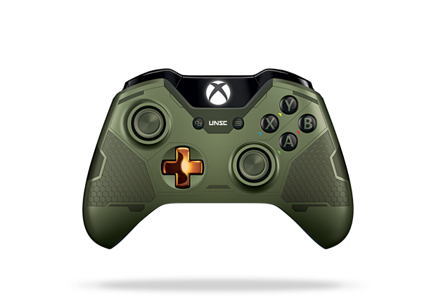 Microsoft gaat ook twee uitvoeringen van de Xbox One Wireless Controller uitbrengen. Het eerste model is dezelfde die bij bovenstaande hardwarebundel zit. De tweede lijkt meer op e limited edition Xbox 360 controller die verscheen bij de limited edition Xbox 360 van Halo 3. Bij het blauw/grijze model krijg je bovendien de REQ Pack met Resolute visor. Bij de groene uitvoering krijg je de REQ Pack met Dauntless visor.