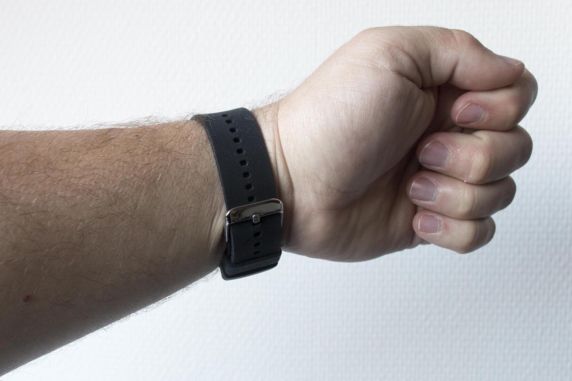 Het horlogebandje is gemaakt van siliconen. Het ligt erg prettig om de pols. Alleen de sluiting is van metaal. Het horloge zal dan ook niet snel krassen wanneer je aan het tikken bent op jouw mooie ultrabook.