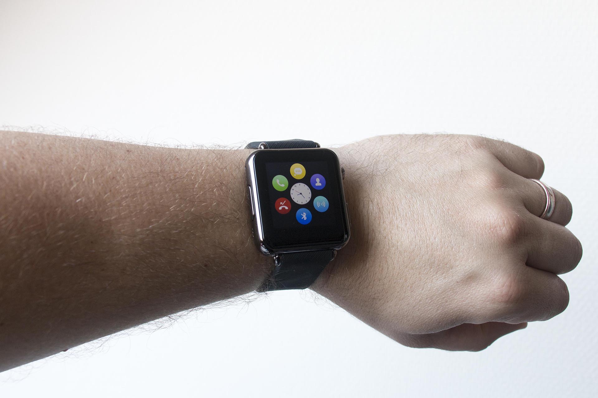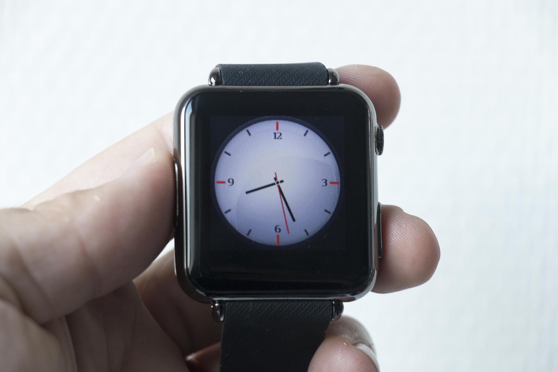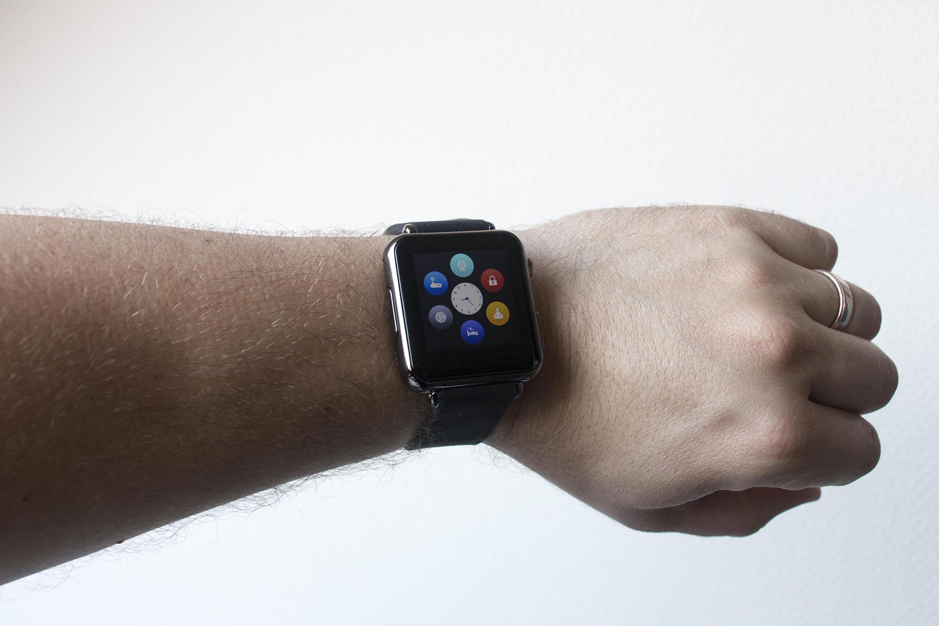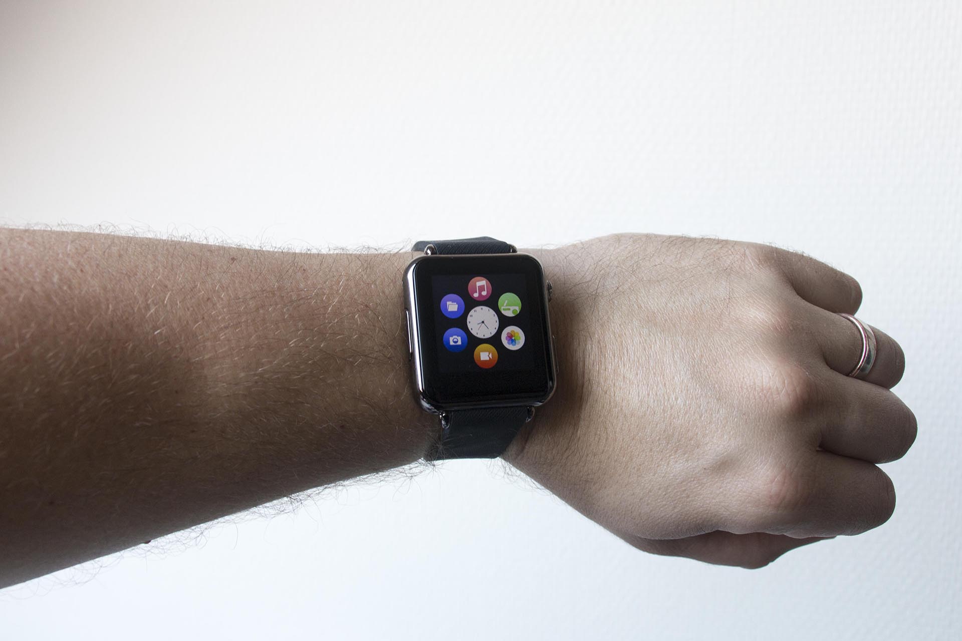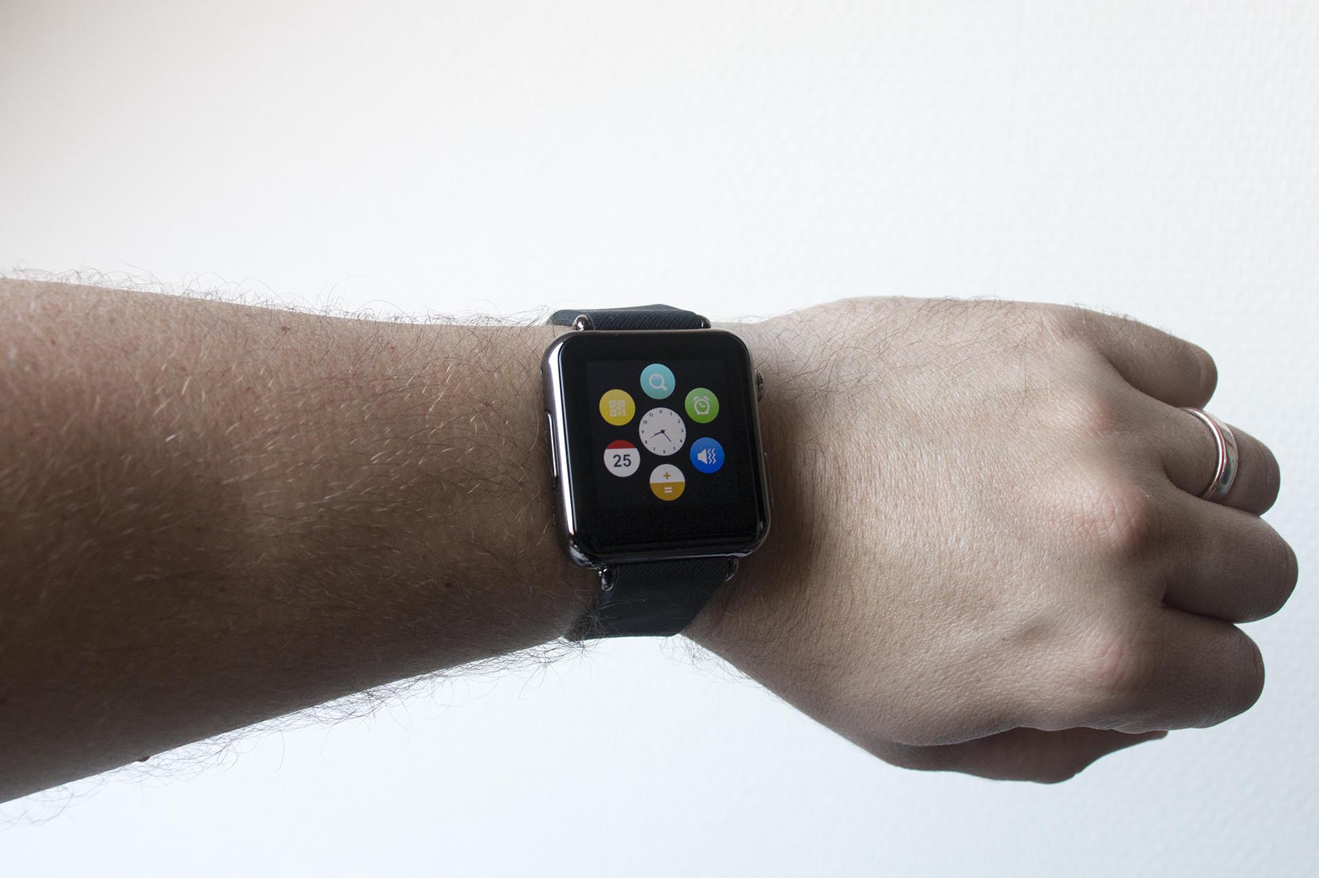 Van een afstandje lijkt de iRadish Y6 smartwatch zeer sterk op die van Apple. Zelfs wanneer je het menu opent, zie je de vrolijke bolletjes die apps voorstellen. Pas wanneer je dichterbij komt, zie je dat het net even anders is.