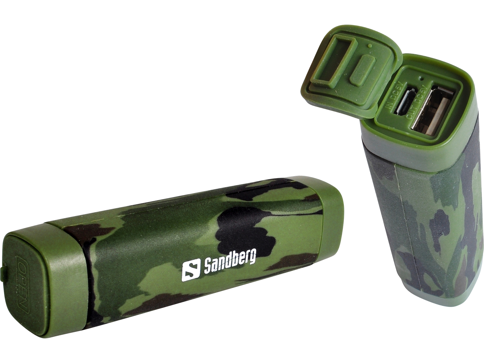 De Sandberg Outdoor Powerbank 2600 mAh is de perfecte oplossing. Deze stoere lader heeft army kleuren, waarom weet ik niet. Het ziet er natuurlijk een stuk toffer uit, je moet ‘m alleen nooit op de grond laten vallen in een bosrijke omgeving.
