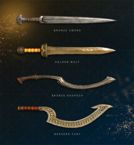 De wapens zijn nog nooit zo uitgebreid geweest. Ik dacht eventjes een overzicht te plaatsen van alle wapens, maar dan wordt deze review veeeeeel te lang. Daarom eventjes de categorieën. Oke! Ook de categorieën zijn er te veel om op te noemen. Laten we zeggen dat er enorm veel zwaarden, bogen, speren, scepters, en bijlen zijn. Deze wapens kun je levelen, wat belachelijk veel geld kost. Ook zijn er diverse speciale wapens met speciale abilities te vinden. Zoals giftige pijlen etc.