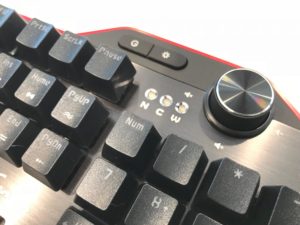 De RX85 heeft ook handige ‘onzichtbare’ functies verstopt zoals N-key Rollover. Deze functie wordt ook wel anti-ghosting genoemd en houdt in dat het toetsenbord ten alle tijden signalen blijft doorgeven, mocht je meerde toetsen tegelijk indrukken. Daarnaast biedt de RX85 de mogelijkheid om de Windows toets te blokkeren tijdens je game sessie, altijd vervelend als dit gebeurt! Wel zichtbaar is de spectaculaire RGB verlichting die in bijna elke denkbare configuratie is te gebruiken. Zo kan je de verlichting in 5 standen gebruiken en 4 niveaus van lichtsterkte bepalen. Zelf ben ik erg fan van ‘mode 4’. In deze stand is het toetsenbord reactief en blijft elke ingedrukte toets nog 1 seconde branden. Als laatste is er ook aan de multimedia toetsen gedacht en hier pakt de volume knop absoluut de eerste plaats op de RX85, wat ziet deze er ontzettend tof uit. Je kan hiermee super makkelijk het volume aanpassen van je game of je favoriete muziek.
