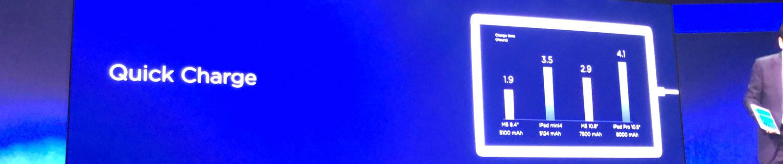 Update: Inmiddels zijn de specs binnen. QuickCharge en Quick Charge zijn toch twee heel verschillende dingen. De MediaPad M5 series draait toch gewoon op eigen HiSilicon Kirin chipset met ondersteuning voor Huawei’s eigen SuperCharge technologie. Uiteraard via USB-C. Ze draaien op varianten van de Kirin 960 chipset met 4GB werkgeheugen en 32GB/128GB opslagruimte.