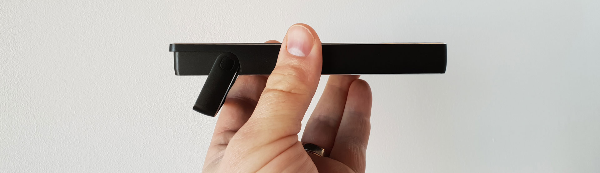 Die bluetooth verbinding op de Celluon Picobit-S is overigens heel handig. Hiermee kun je namelijk een bluetooth speaker aansturen. Daarmee krijg je een heel wat steviger geluid dan er uit de kleine speakers van het ding zelf komt. Oké, het geluid uit de Celluon Picobit-S is niet te harden.