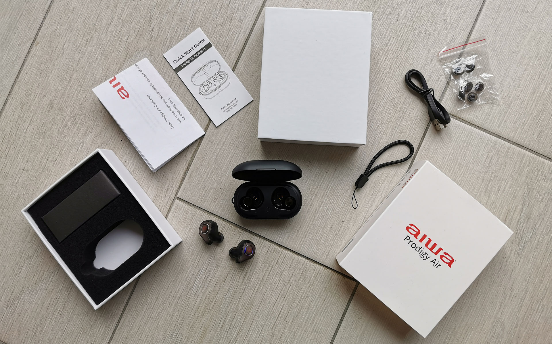 Zoals je van een true wireless headset mag verwachten, levert Aiwa deze met een bewaardoosje die tevens de lader en powerbank is. Daarnaast krijg je nog een strap om hem bijvoorbeeld aan een tas vast te maken. Je krijgt een micr-USB laadkabel en verschillende maten eargels.