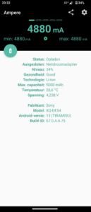 De laadsnelheid varieert zoals aangegeven naar gelang de voortgang van de lading van de batterij. Op de maximale snelheid meten we een stabiel laadvermogen van rond de 4880 mA.
