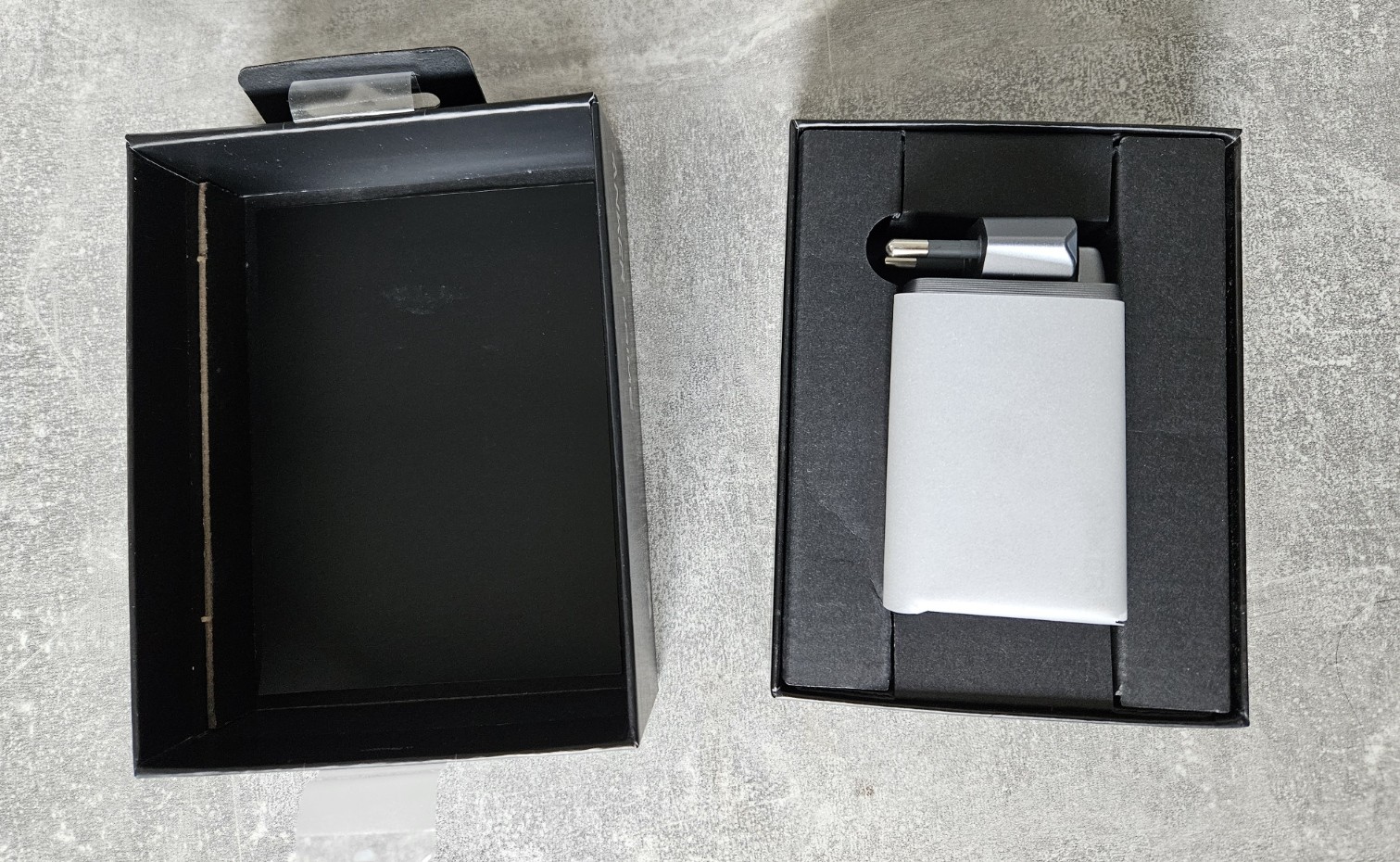 De verpakking is volledig van papier, inclusief de beschermende wikkel om de adapter zelf, FSC-gecertificeerd terwijl voor de grafische weergaven van soya-inkt gebruik is gemaakt. Helemaal prima dus.