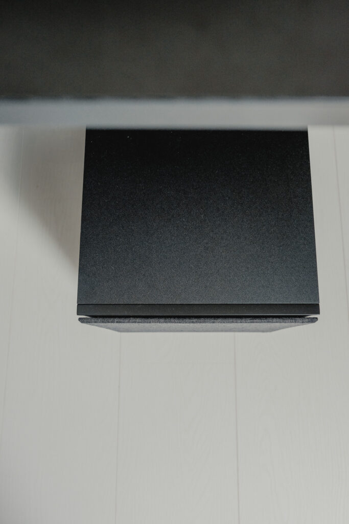 De Malmö Sub 10 is qua uiterlijk simpel maar strak. De matzwarte kast met afgeronde hoeken past perfect onder elk bureau en is verrassend compact voor de prestaties die hij levert. Hou er wel rekening mee dat de subwoofer aan de grote kant is. Logisch ook, want het is een subwoofer met flink wat vermogen. Maar heb je een kleinere ruimte, dan is het zeker iets om van tevoren even bij stil te staan.