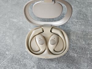 We gebruikten de Kiwi Spark meestal op zo’n 60 tot 70% volume en we kwamen daarmee wel tot de opgegeven 7 uur speeltijd, zelfs er een goede 20 minuten aan voorbij. De capaciteit van de case is dusdanig dat we de headset bijna drie keer volledig konden opladen. Hoewel er OWS’ zijn die beter presteren op dit gebied, vinden we 7 uur in principe wel prima. Hopelijk is de batterij van een dergelijke kwaliteit dat we na twee jaar gebruik geen enorme degradatie meemaken.