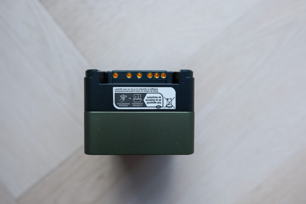 Qua kleur is het geheel overwegend zwart, met subtiele grijze accenten en witte opdruk voor labels. De materialen voelen solide aan en geven de indruk dat deze batterij bestand is tegen intensief gebruik op set of onderweg.