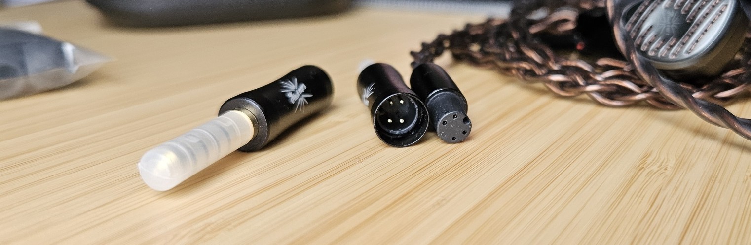 De 2-pin connector zorgt voor een solide connectie met de earbud. De keuze voor een modulaire jack is handig omdat we zo eenvoudig kunnen wisselen tussen een 3,5 mm stereo jack en een 4,4 mm gebalanceerde aansluiting, zonder dat de hele kabel vervangen hoeft te worden.