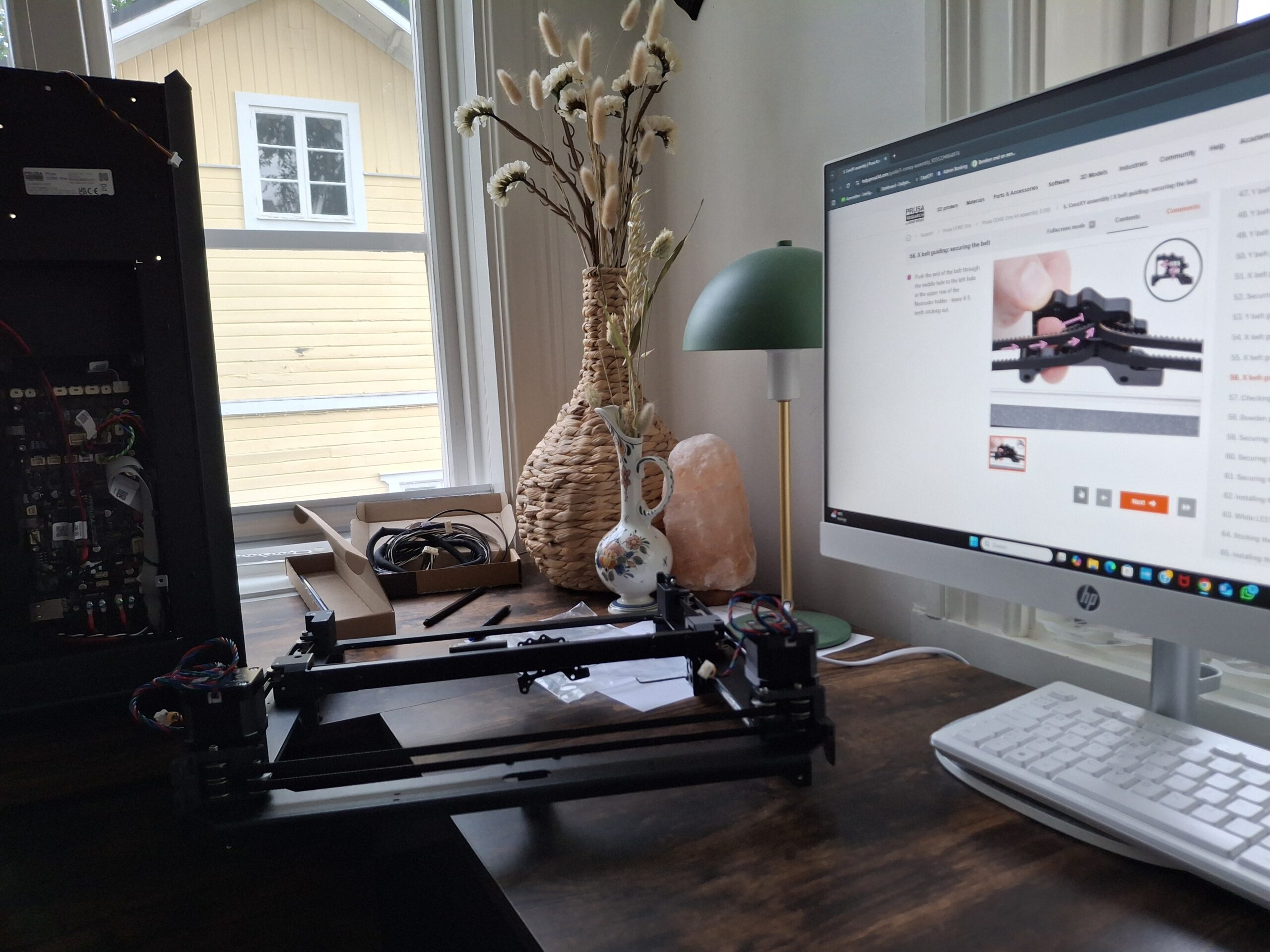 Tijdens het bouwen merkte ik dat ik steeds meer van de machine begon te begrijpen en te leren: door alles zelf te monteren, leer je de Prusa CORE One van binnen en buiten kennen. Je ziet hoe de CoreXY-constructie in elkaar steekt, waar de kabels naartoe lopen, hoe de linear rails zijn bevestigd, en waar je straks bij moet kunnen als je ooit iets moet vervangen of finetunen.