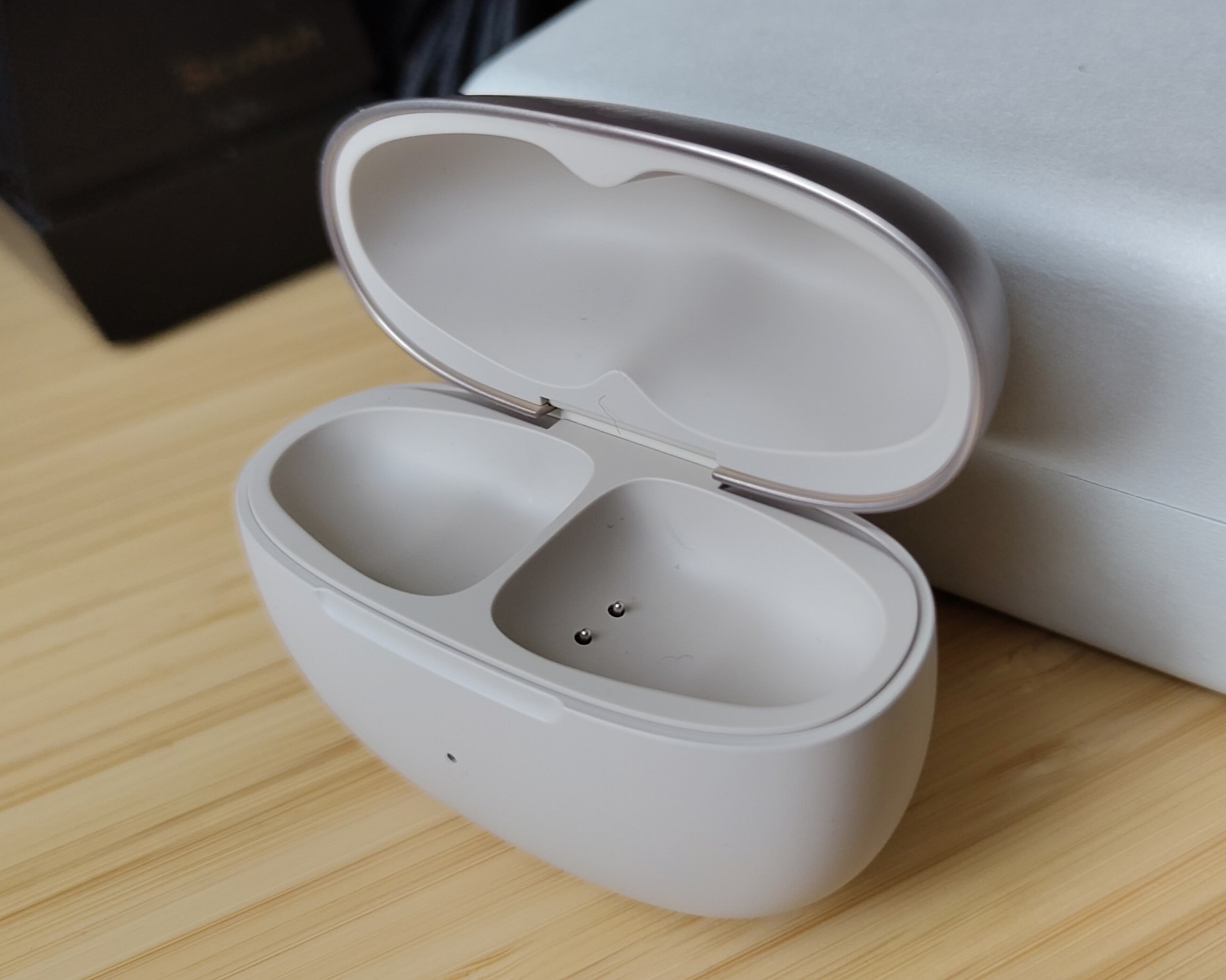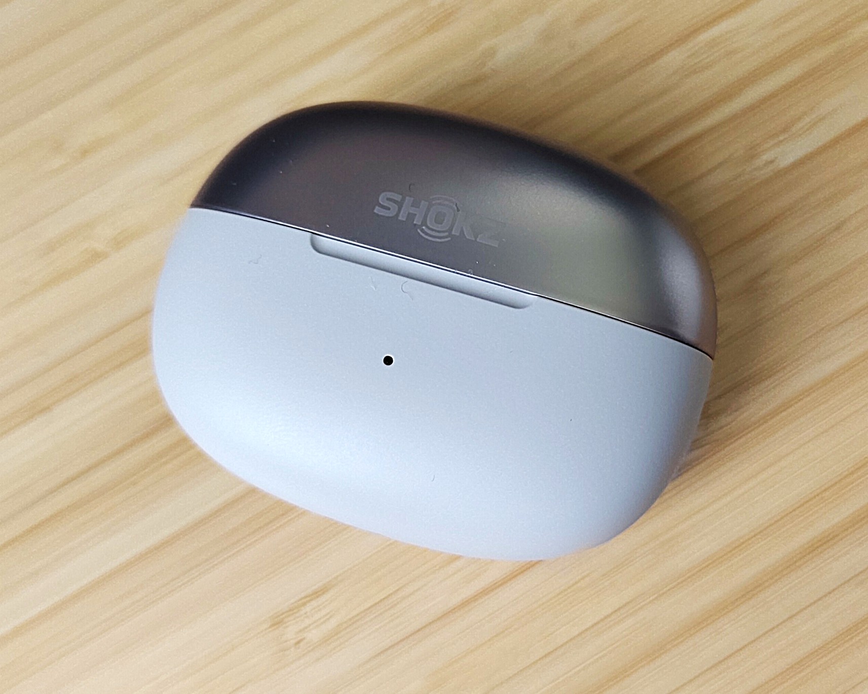 De oplaadcase heeft het beproefde ei-vormige ontwerp meegekregen. Hiermee komt de case misschien wat saai over en ook qua bouw besteedde Shokz duidelijk minder aandacht aan de case die wat goedkoop aanvoelt, en bovendien een niet-gevoerde klep heeft waardoor bij het sluiten deze extra hol klinkt. Praktisch werkt de case echter naar behoren en schuif je hem makkelijk weg in de meest strakke broeken. Uw reviewer is persoonlijk ook wel fan van de toepassing van gewoon een pairingknop op de case.