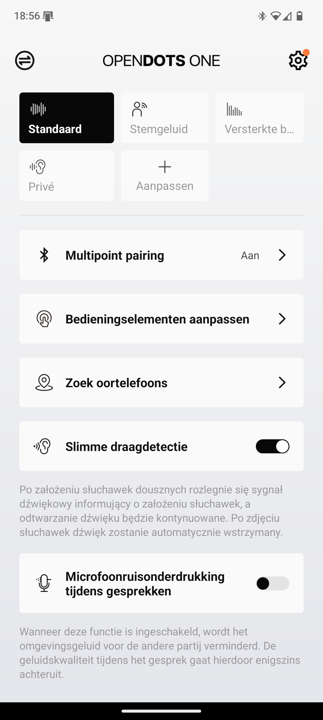 De ODO is voorzien van bluetooth 5.4 en zorgt voor stabiele verbinding en volgens opgaaf maximaal 10 meter bereik. Op de testlocatie hebben de earbuds geen moeite met muren en bronnen van storing (naar redelijkheid), maar ze komen lopen wel iets eerder tegen het maximum aan ten opzicht van de sterkste performers op het gebied van bereik. Qua codecs moeten we het doen zonder de hogere kwaliteits-optie; we hebben slechts de beschikking over SBC en AAC. Multipoint werkt op de manier dat je het zou verwachten met maximaal twee actieve apparaten en tot acht koppelingen in het geheugen. Google Fastpair en Windows Quickpair worden helaas niet ondersteund, dus koppelen gaat op de traditionele wijze.