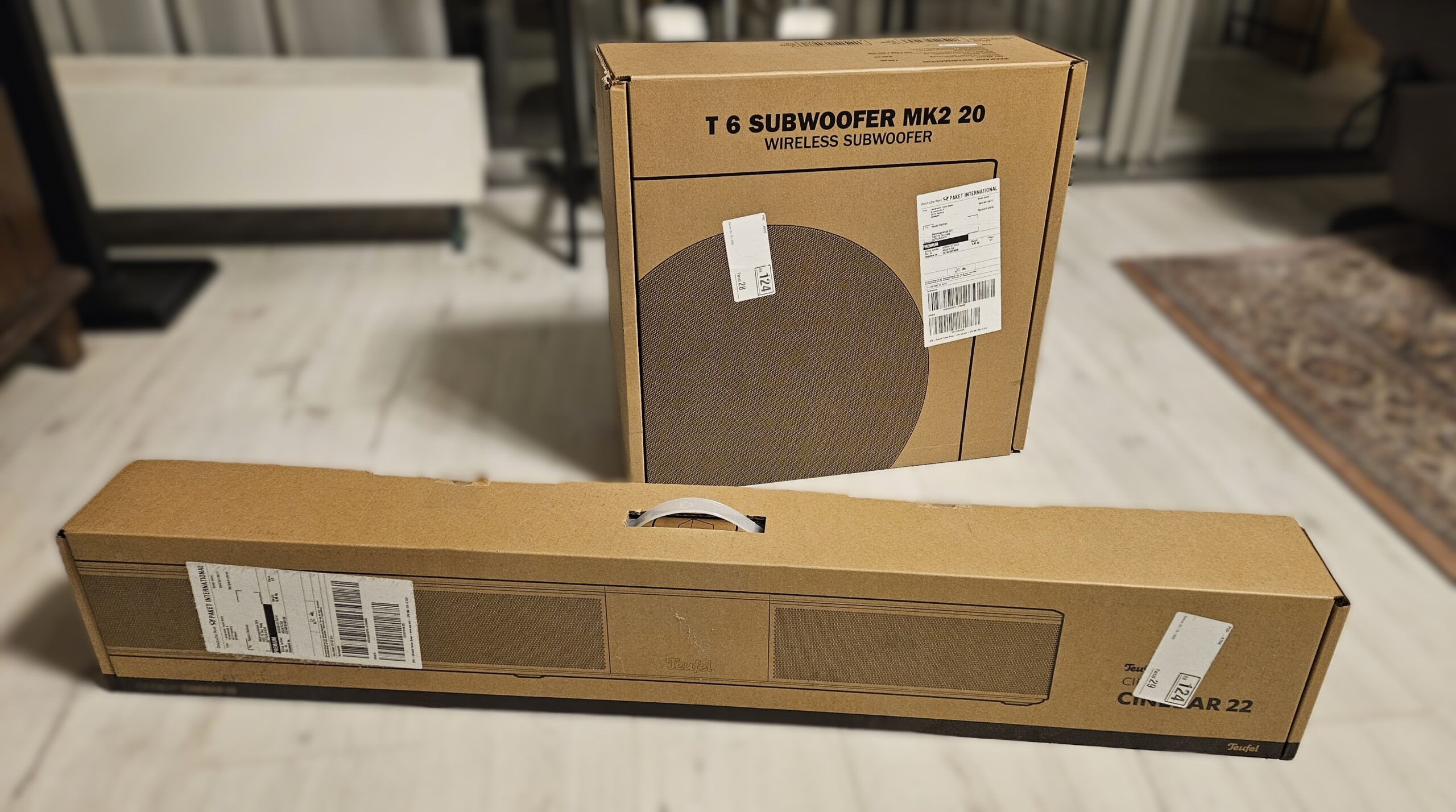 Zoals we gewend zijn van Teufel komen de soundbar en sub sober verpakt in gerecycled kartonnen verpakkingen. Naar onze mening een perfecte manier van verpakken: mensen weten wat ze kopen, dus waarom het extra geld besteden aan esthetiek? Intern kiest Teufel voor schuim om de apparatuur goed vast te zetten en te beschermen tegen stoten. Minder milieuvriendelijk, maar we hebben tot op heden geen betere duurzame oplossingen gezien die apparaten van dit gewicht voldoende beschermen. De doos van de soundbar is voorzien van een handvat. De doos van de subwoofer is niet voorzien van een draaghulpmiddel zoals uitdrukbare handvatten.