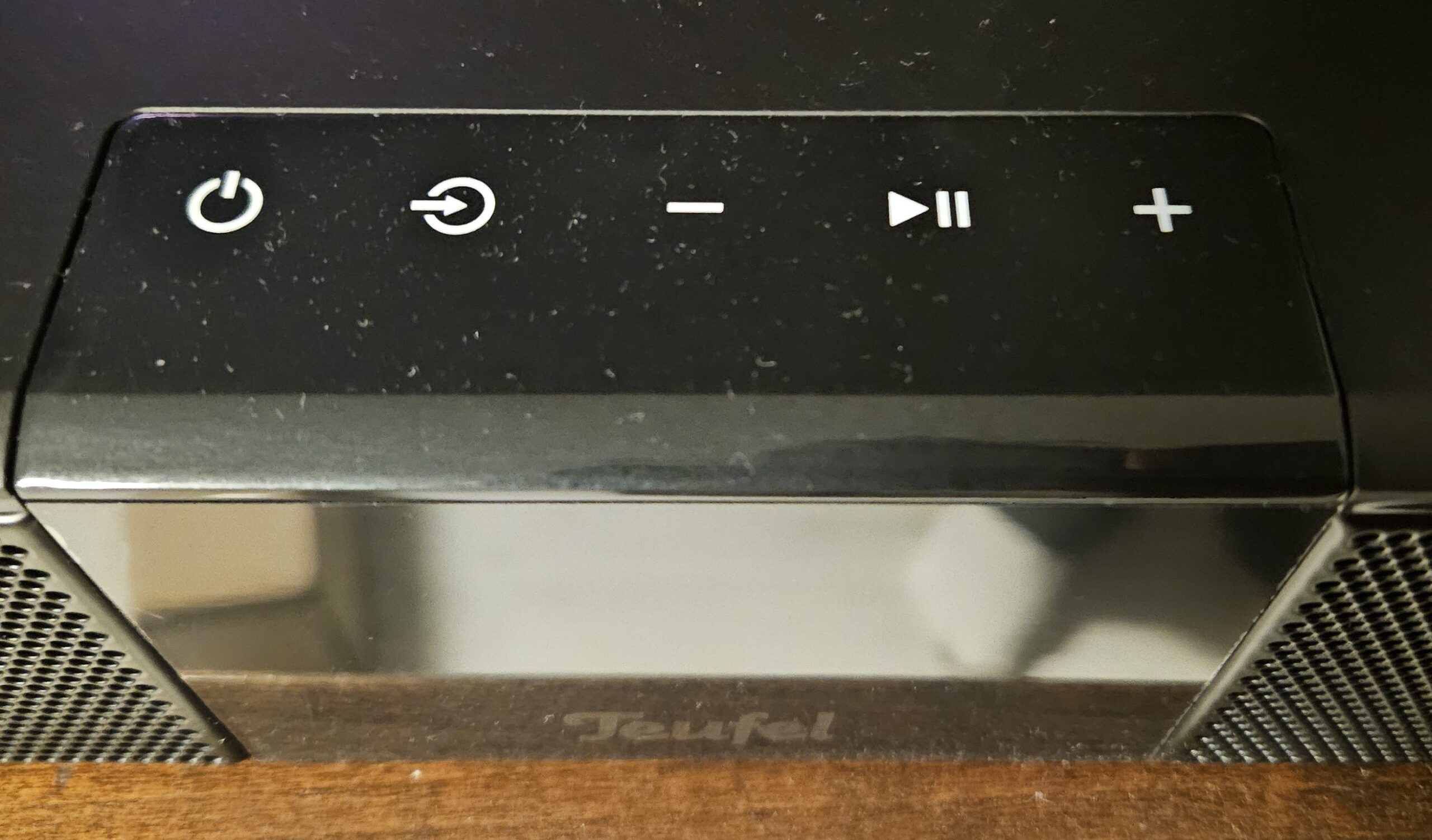 Boven het display bevinden zich touch-sensitive knoppen voor basisfuncties zoals standby, bronselectie, volume en play/pauze. Je zult ze waarschijnlijk niet vaak gebruiken, maar het is prettig dat ze aanwezig zijn.