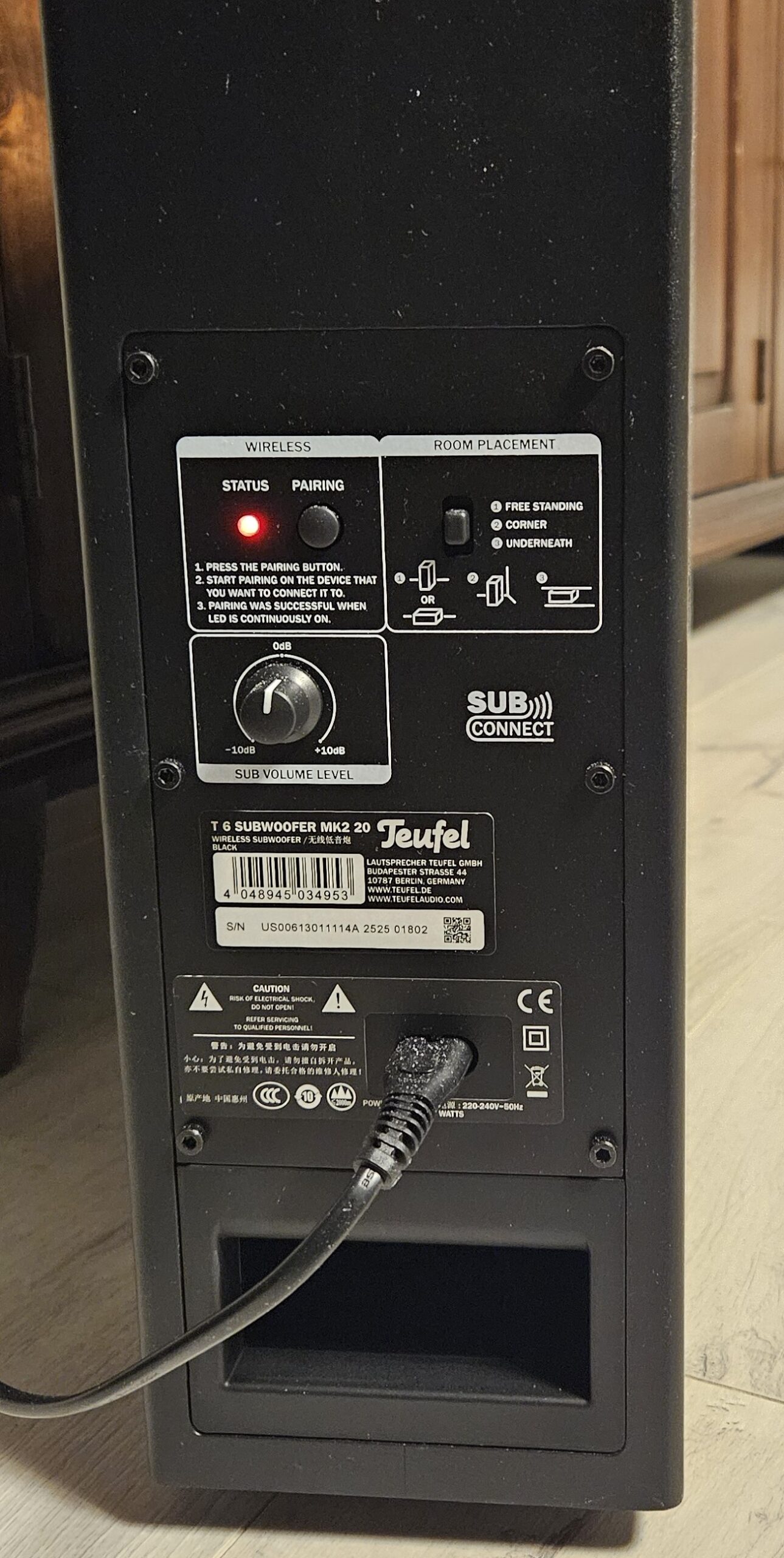 - Draadloze T 6 subwoofer, staand of liggend te plaatsen
