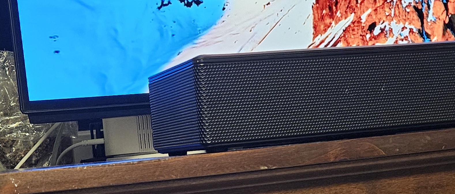We merken met onze Panasonic Z50 ook dat ondanks dat deze voorzien is van een vrij hoge voet, het echt kiele kiele is om de soundbar het beeld niet deels te laten blokkeren. Als de televisie wat lager zou staan, zou het geen probleem zijn. Wij maken op de testlocatie echter gebruik van een televisiekabinet, wat betekent dat het paneel wat hoger gepositioneerd is en de soundbar door de hoogte dus inderdaad het beeld deels blokkeert: