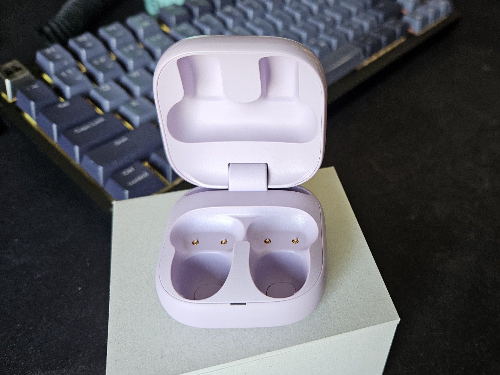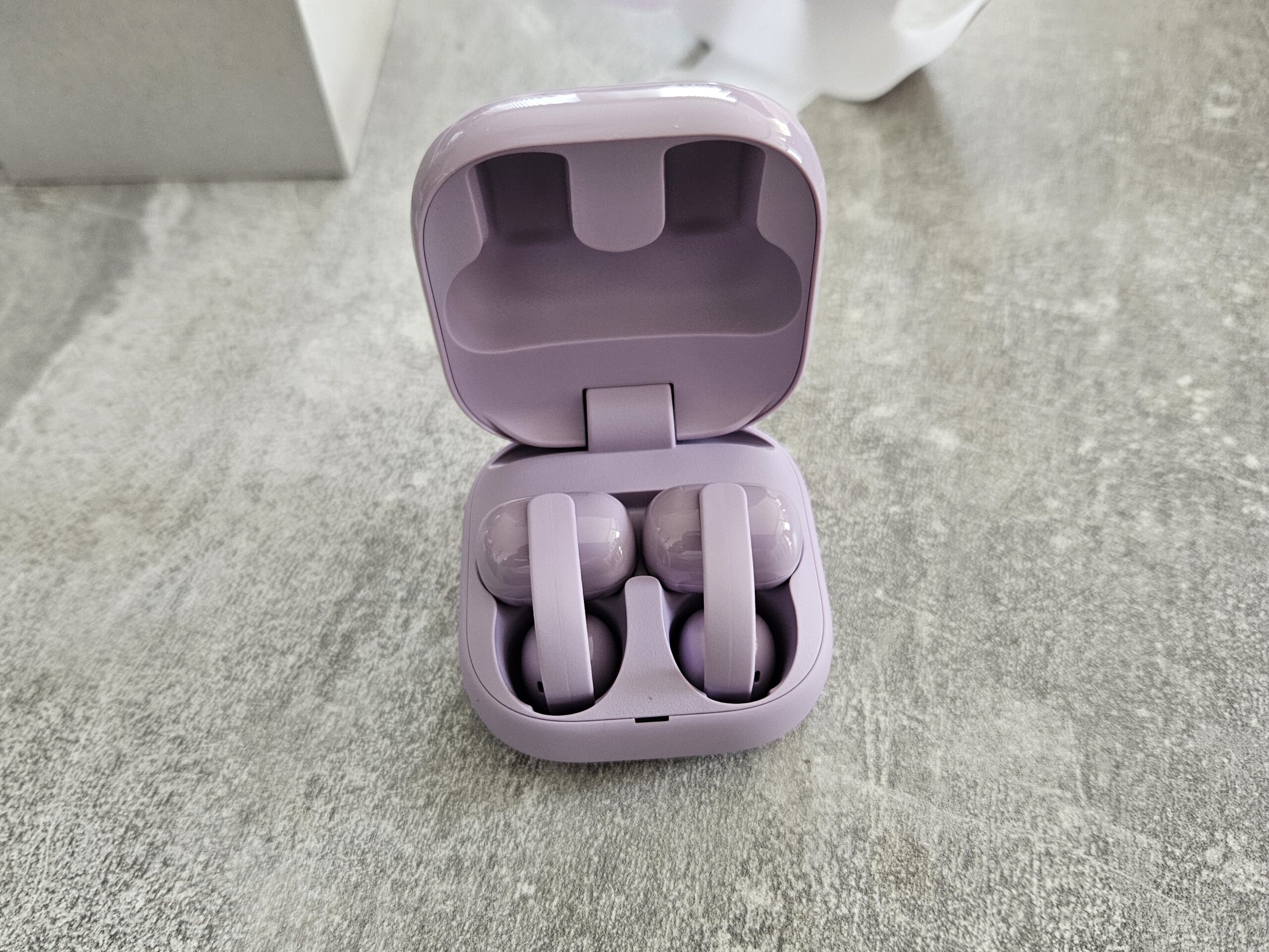 De case is van eenzelfde concept als die we nu in enkele modellen in deze serie kennen. Glossy afgewerkt, vierkant en een beetje kubus-vormig. Het ziet er prima uit en voelt ook zo aan. Door de matige demping van de klep klinkt het sluiten wat hol en goedkoop wat in het geval van de Linkbuds Clip wat erger is dan bijvoorbeeld de LinkBuds Fit.