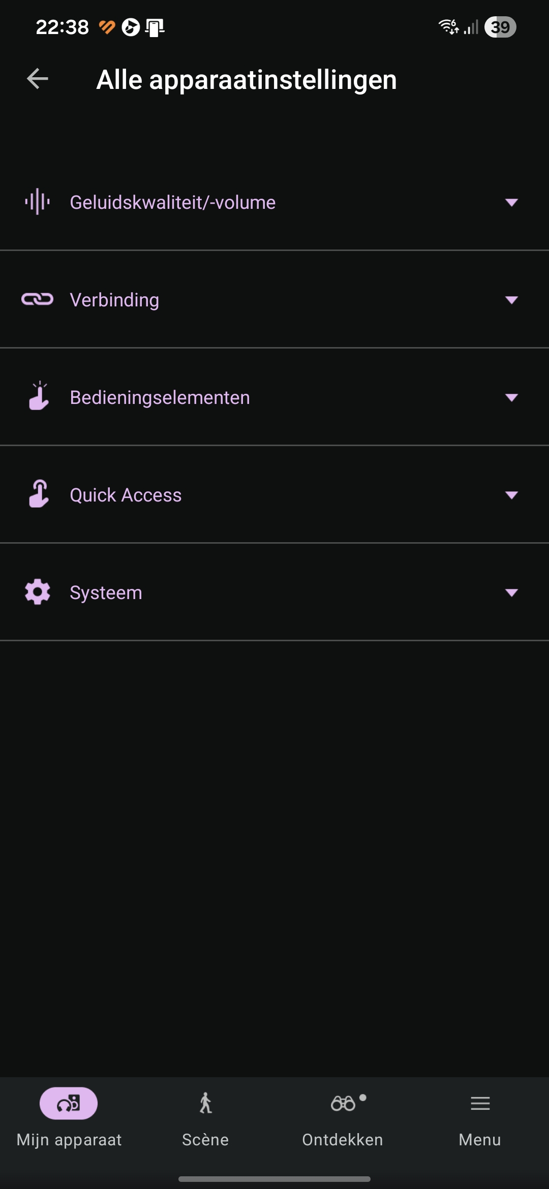 Verder kun je o.a. de multipoint beheren en de bediening en touchgevoeligheid aanpassen. Adaptieve opties als automatische volumeregeling zijn ook aanwezig, al doen we hier ondanks dat Sony hier erg in investeert al jaren niets mee (en uit gesprekken met concullega’s weten we dat we niet de enigen zijn). 360 Reality Audio vinden we ook terug. Verder zien we opties voor notificatievoorlezing, automatische scene-herkenning en snelle koppelingen naar streamingdiensten..