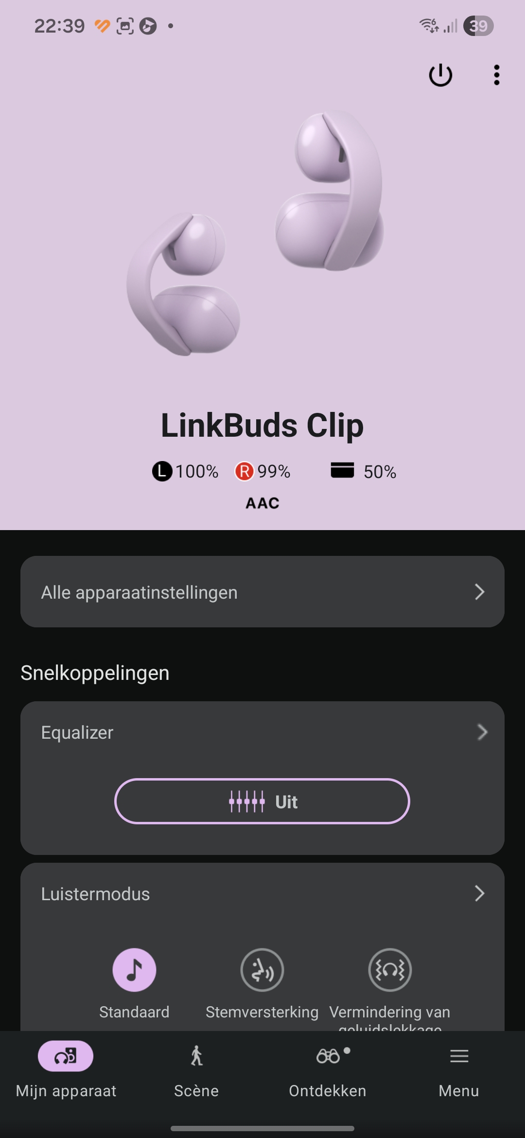 Daar staat tegenover dat de LinkBuds Clip, met een minimale prijs van €170 (op het moment van schrijven) en een adviesprijs van €190, binnen hun prijsklasse relatief beperkt zijn qua featureset. Zo ontbreken onder meer draadloos laden en auracast, en is er geen mogelijkheid om het geluid af te stemmen op basis van je gehoor of persoonlijke tonaliteitsvoorkeuren. Opvallend, zeker omdat dergelijke functies binnen de LinkBuds-serie eerder wel beschikbaar waren.